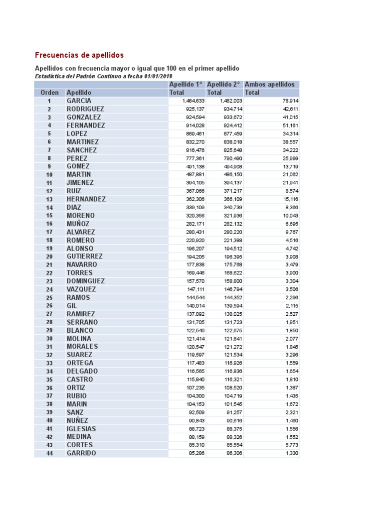 Revelan cuántos son los apellidos en el país y cuáles los más populares
